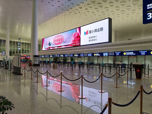 写真1:武漢全面封鎖後の武漢空港の人影の見えないチェックインエリア